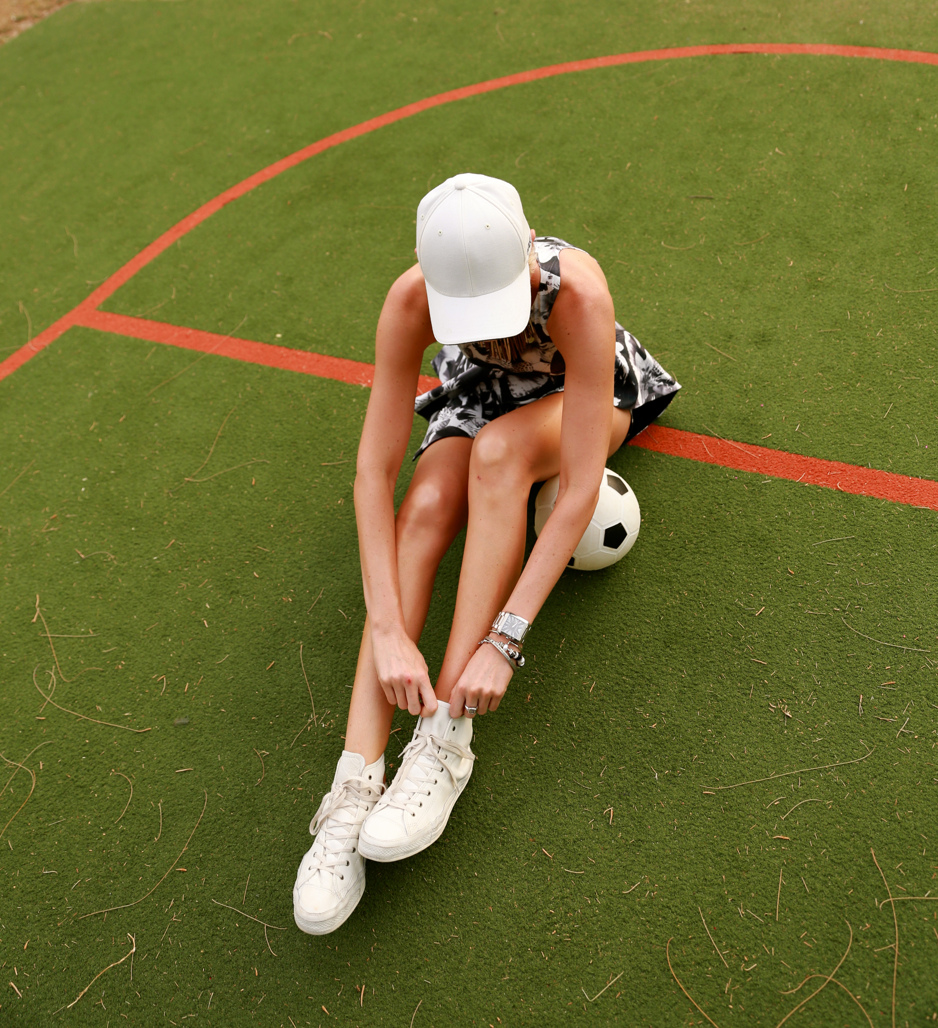 Wearing: Finder Keepers ‘Wait For Me’ playsuit ∆ Flexifit white cap ∆ Converse hi-tops ∆ Armani watch ∆ Ray-Ban black on black aviators ∆ El Minara neckpiece