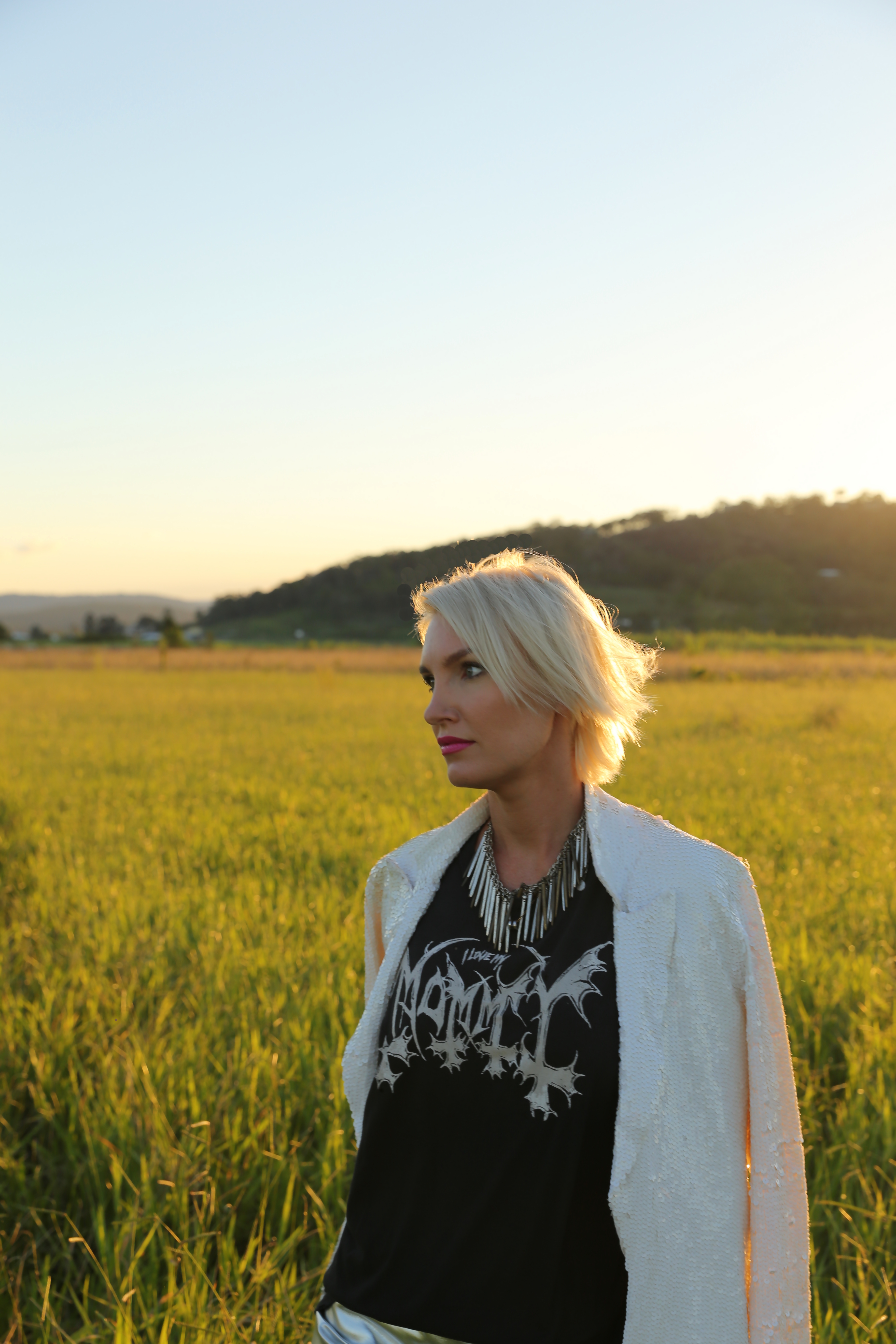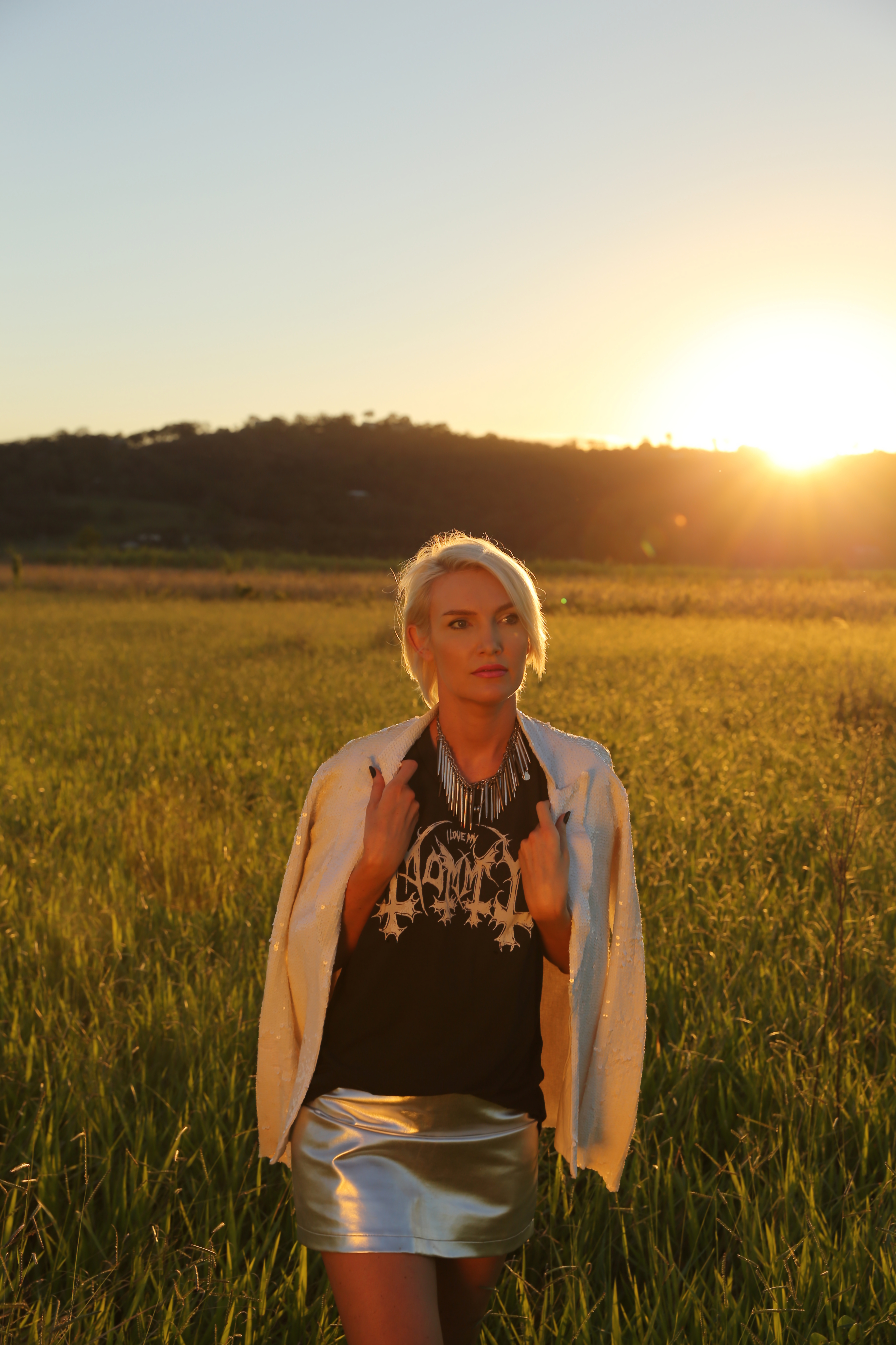 Here I am wearing: Aje sequin jacket ∆ UNIF muscle tee ∆ StyleStalker metallic skirt ∆ El Minara neckpiece ∆ Cowboy boots by Cream on Crown