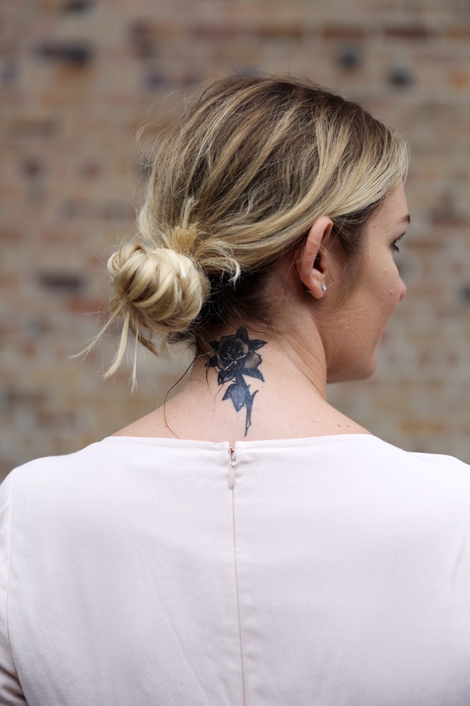 Here I’m wearing: Emelia Romper by For Love and Lemons, Clutch by Shona Joy, Alias Mae heels. (New tattoo by Gummy Johnston from Thanks Tattoo, Darlinghurst)